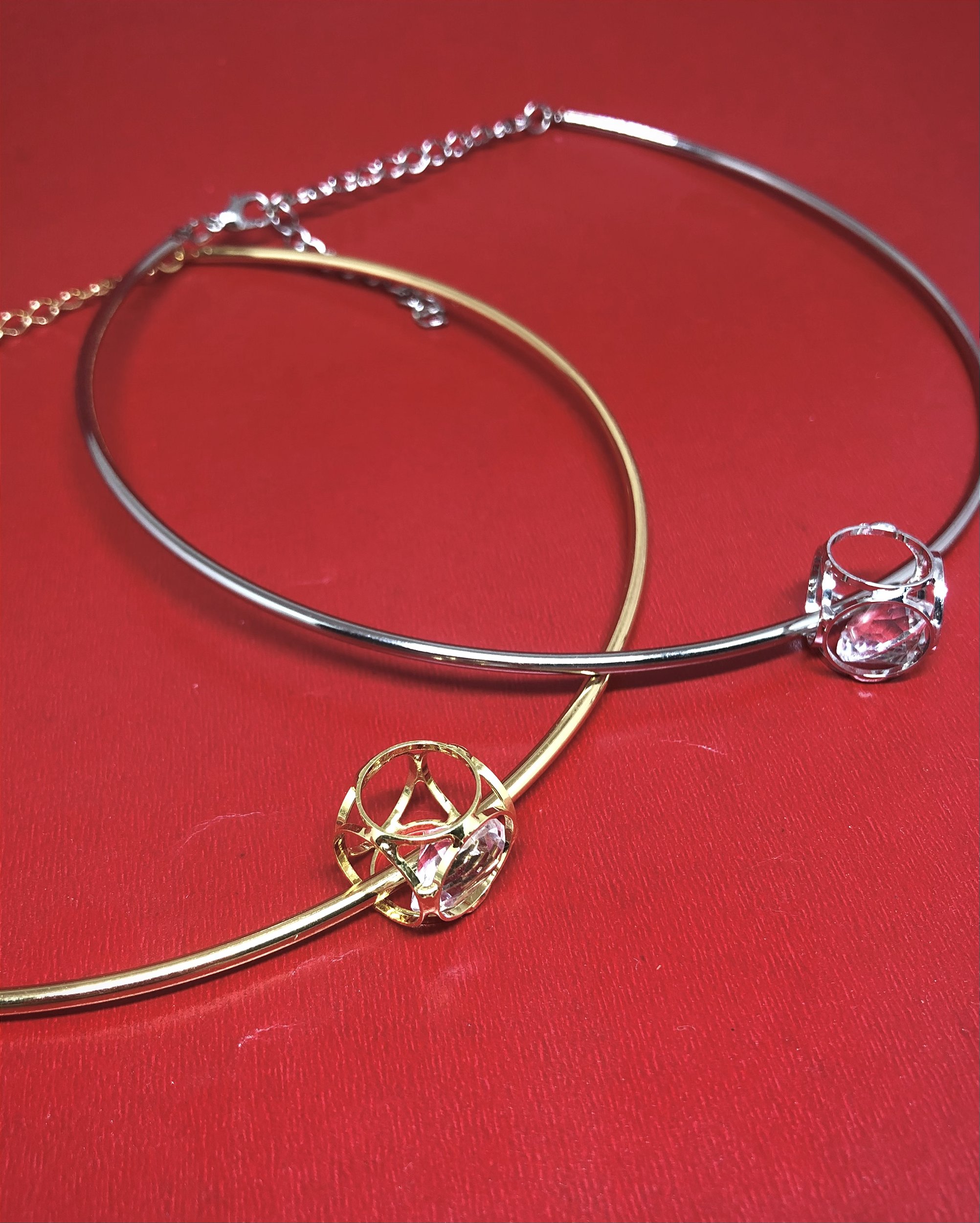Gargantilha com pingente cubo cristal que pode ser removido.